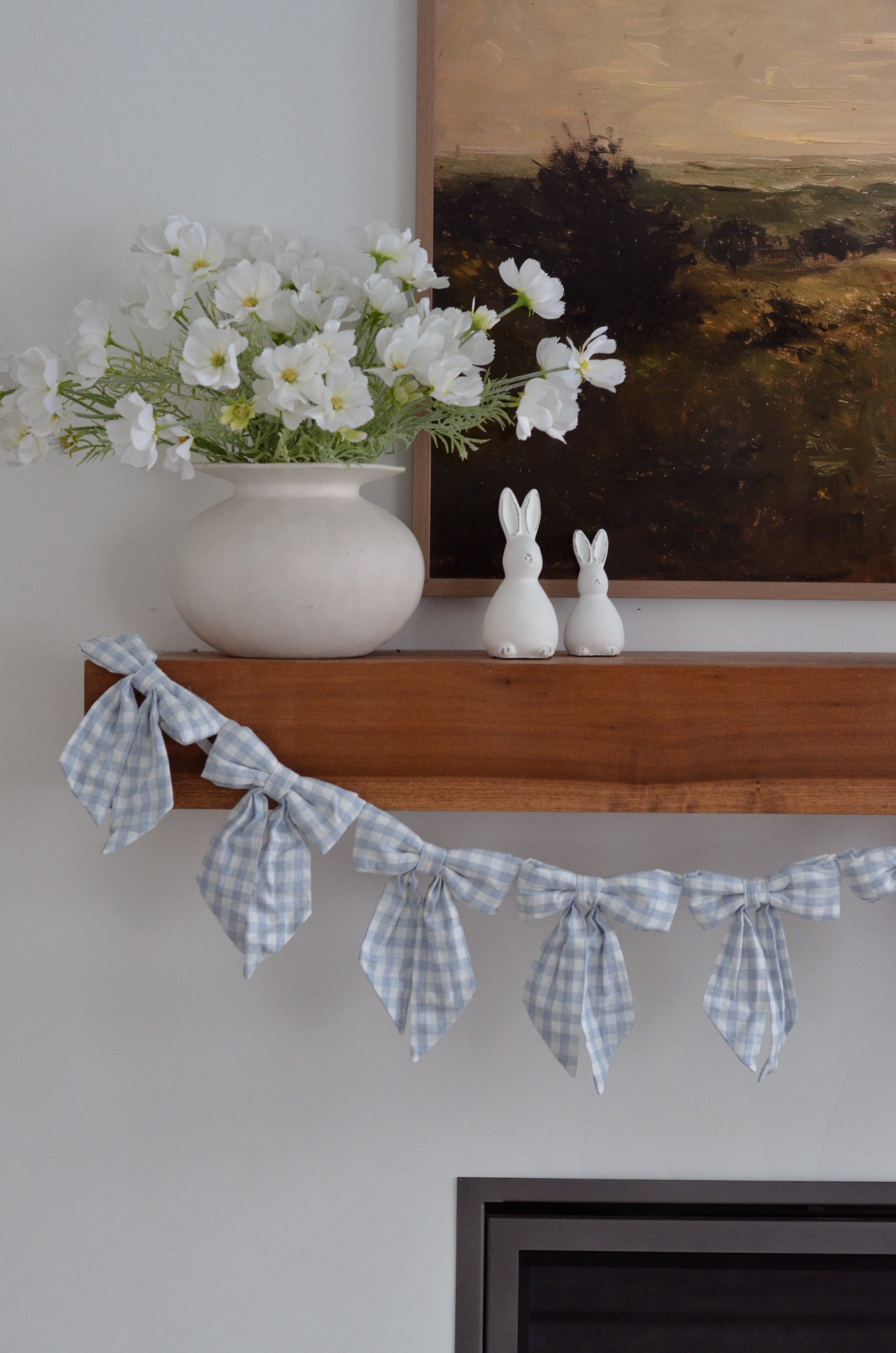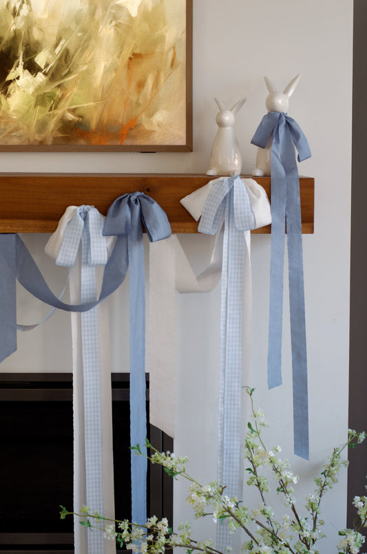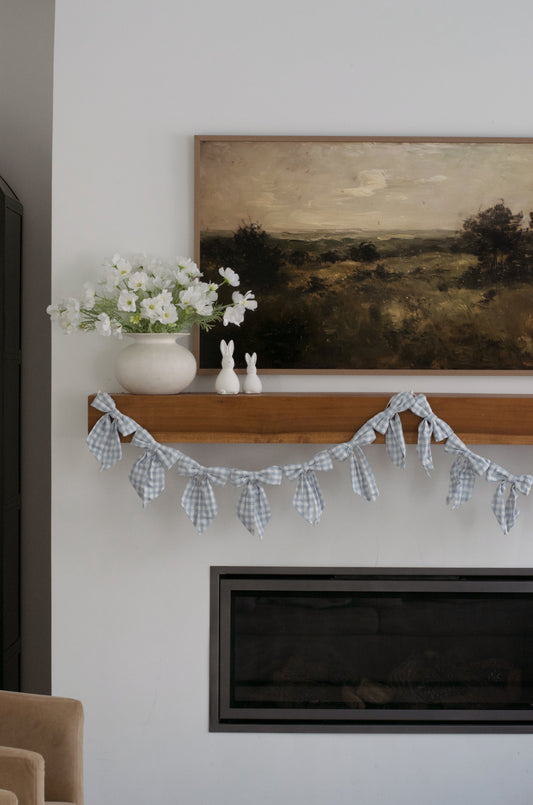 Blue Gingham Fabric Bow Garland