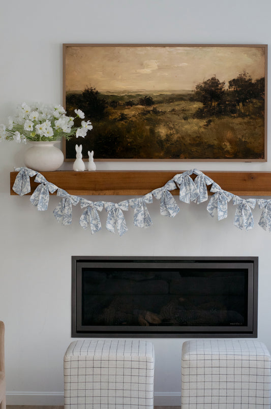Blue Toile Fabric Bow Garland