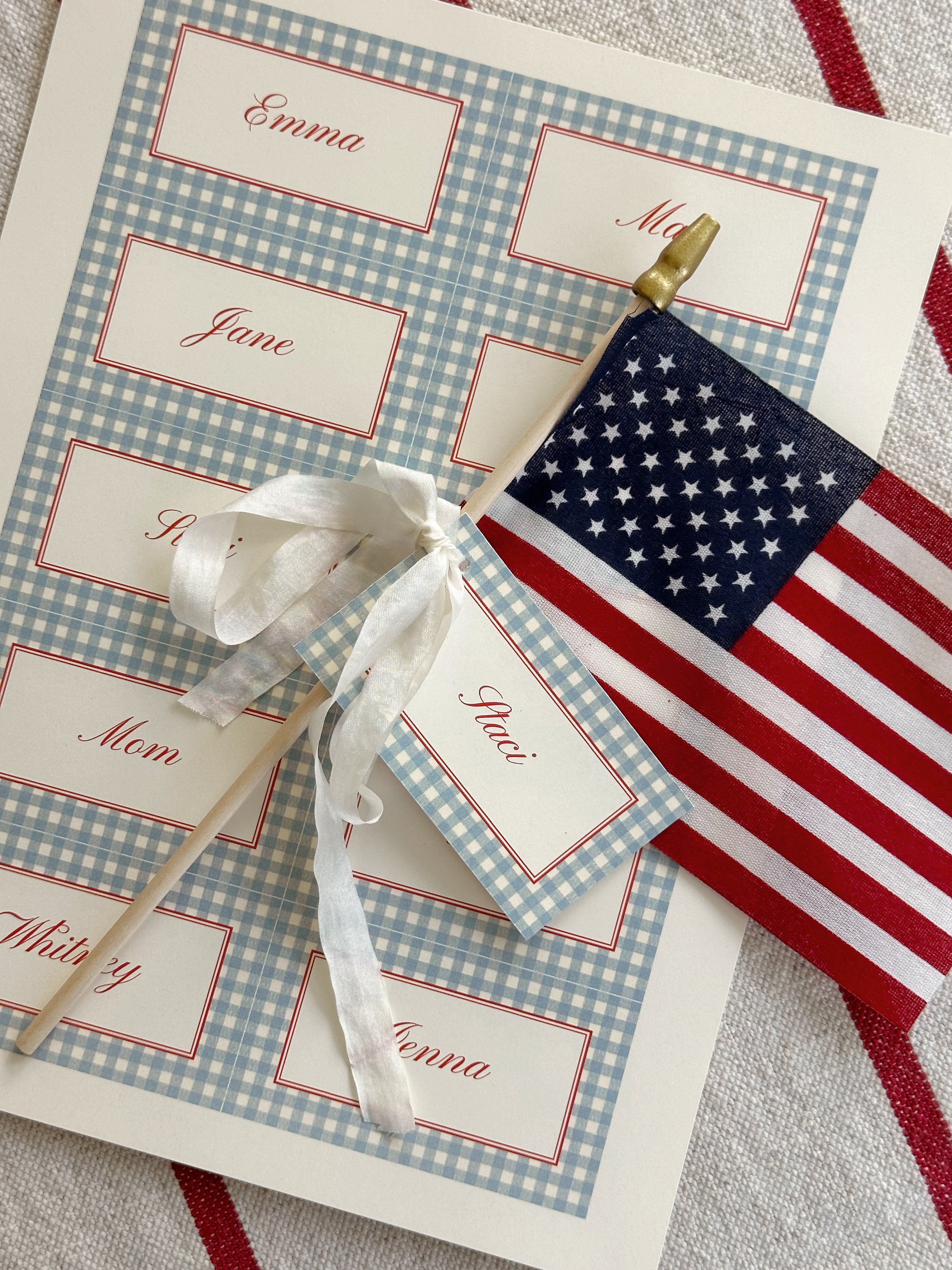 Gingham American Flag Framed Vintage Art - 9" x 9"