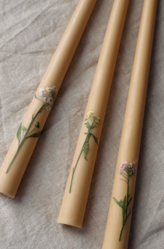 Floral Inlaid Taper Candles 10” (Set of 3)