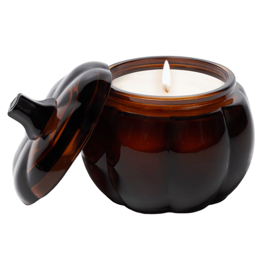 Hello Fall Soy Candle - Amber Glass Pumpkin Jar - 20 oz