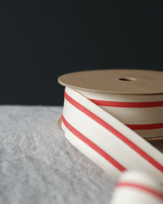 Cotton Striped Ribbon Red/Cream - 20 yards