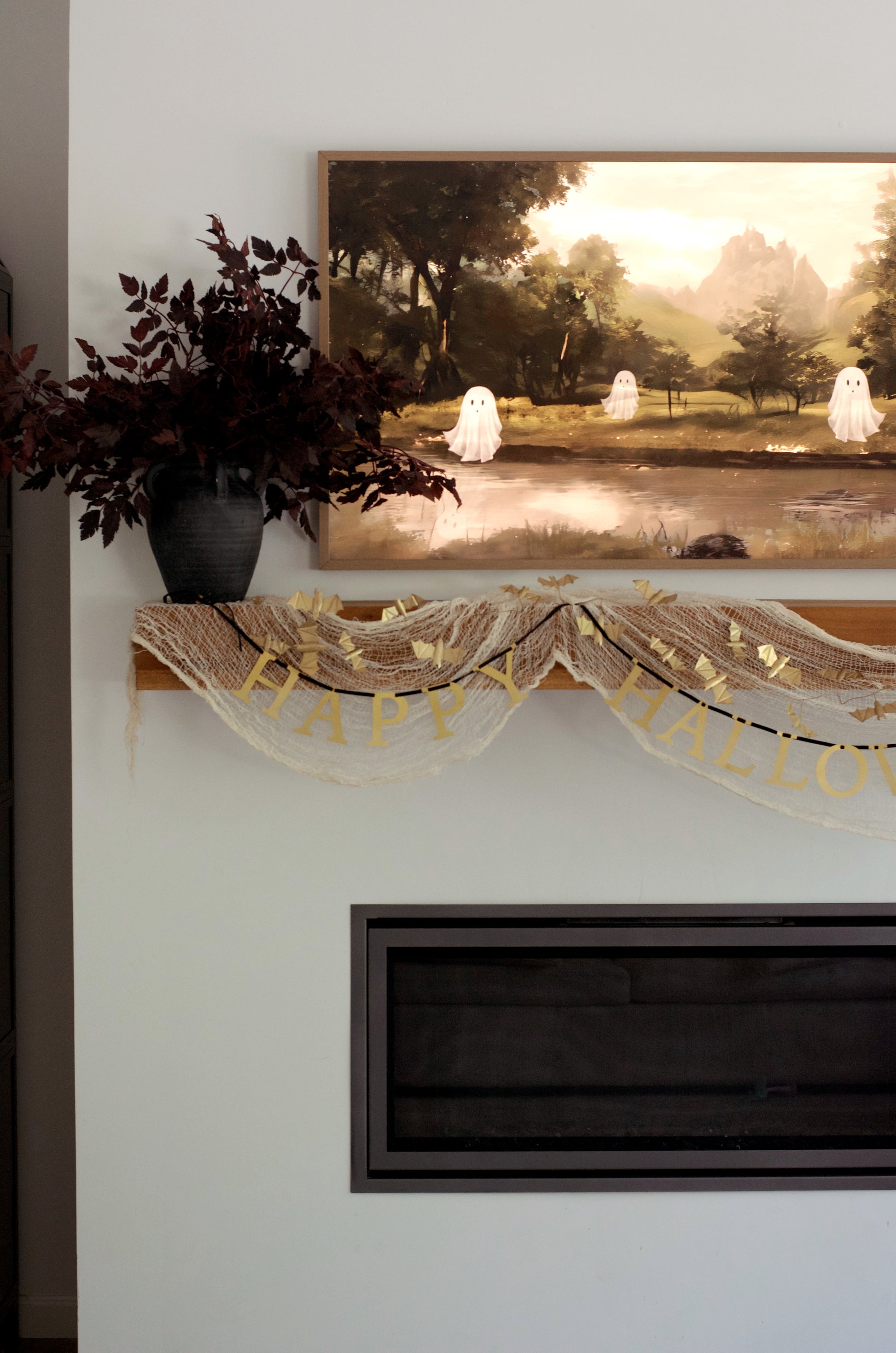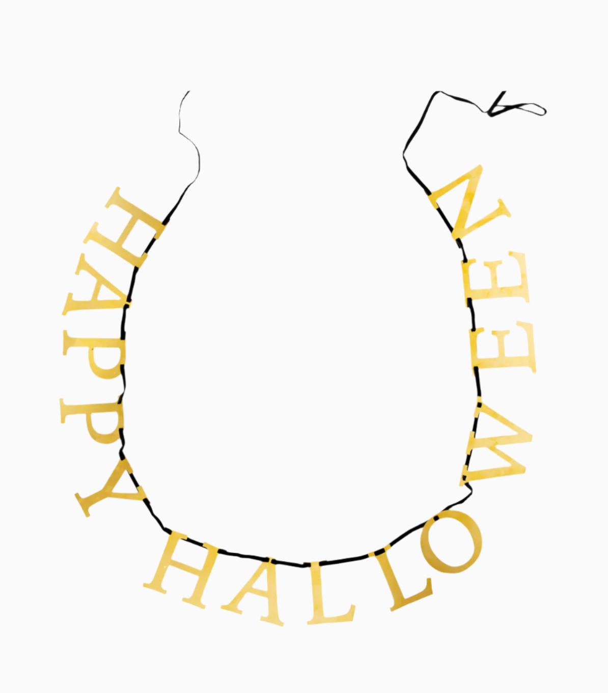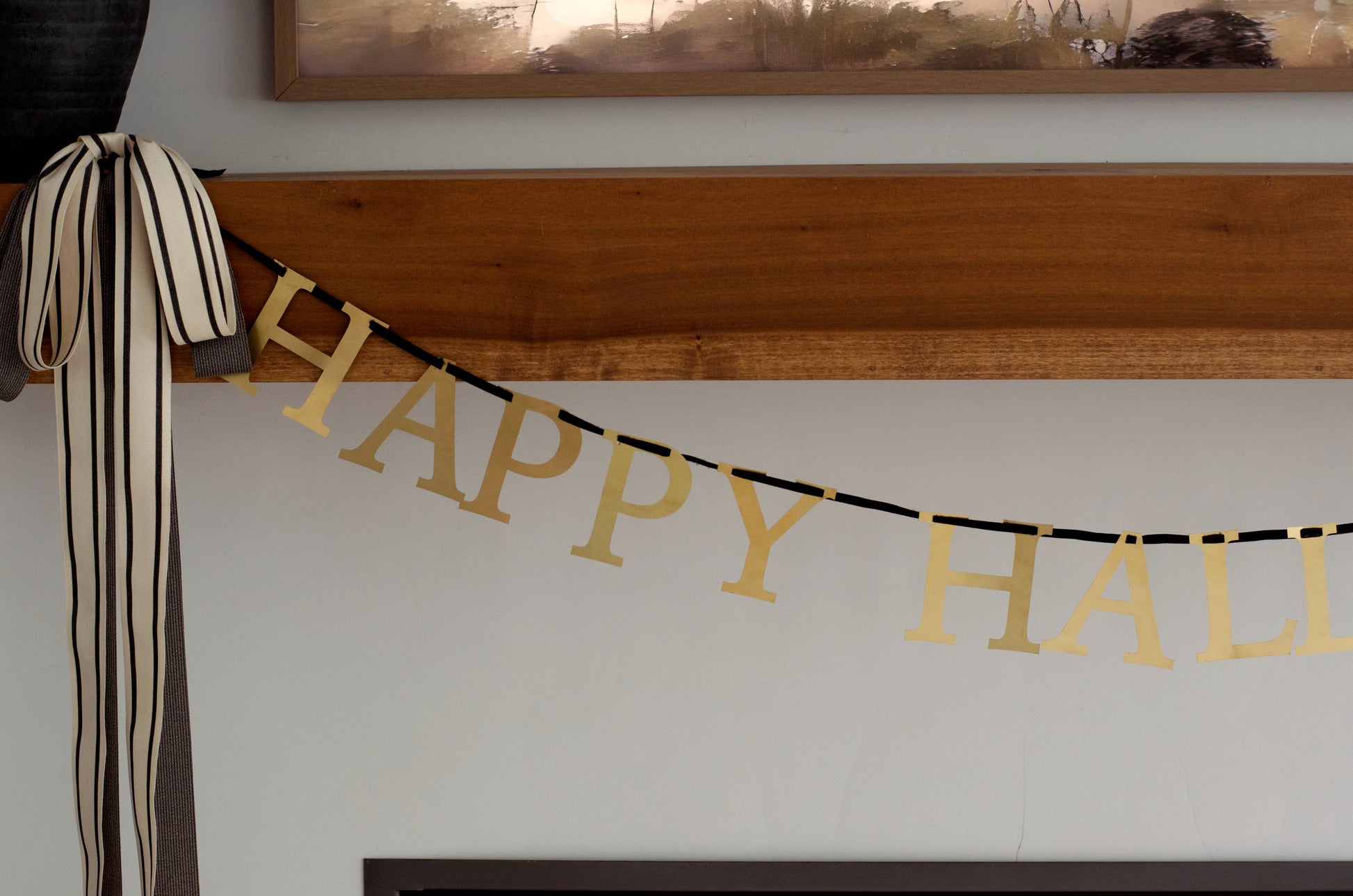 Add a touch of charm to your spooky season decor with this elegant Gold Metal Happy Halloween Garland. The letters in this banner are cut from metal and come prestrung on black ribbon making it the perfect addition to your Halloween mantle. Reusable year after year.